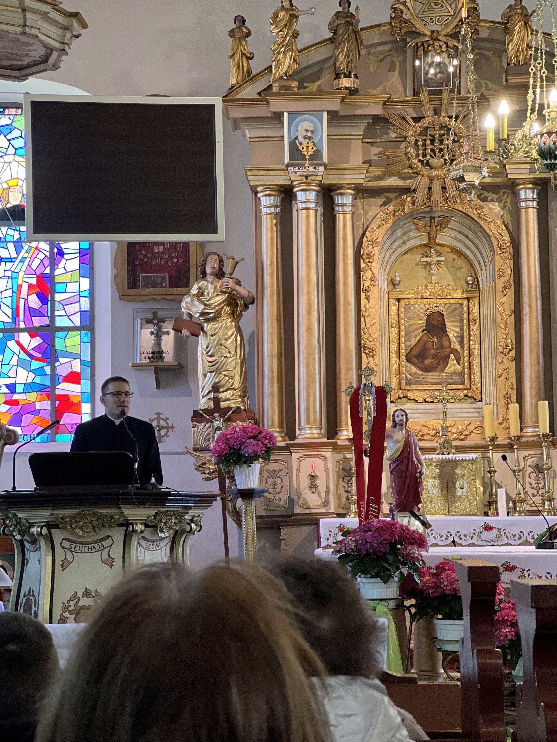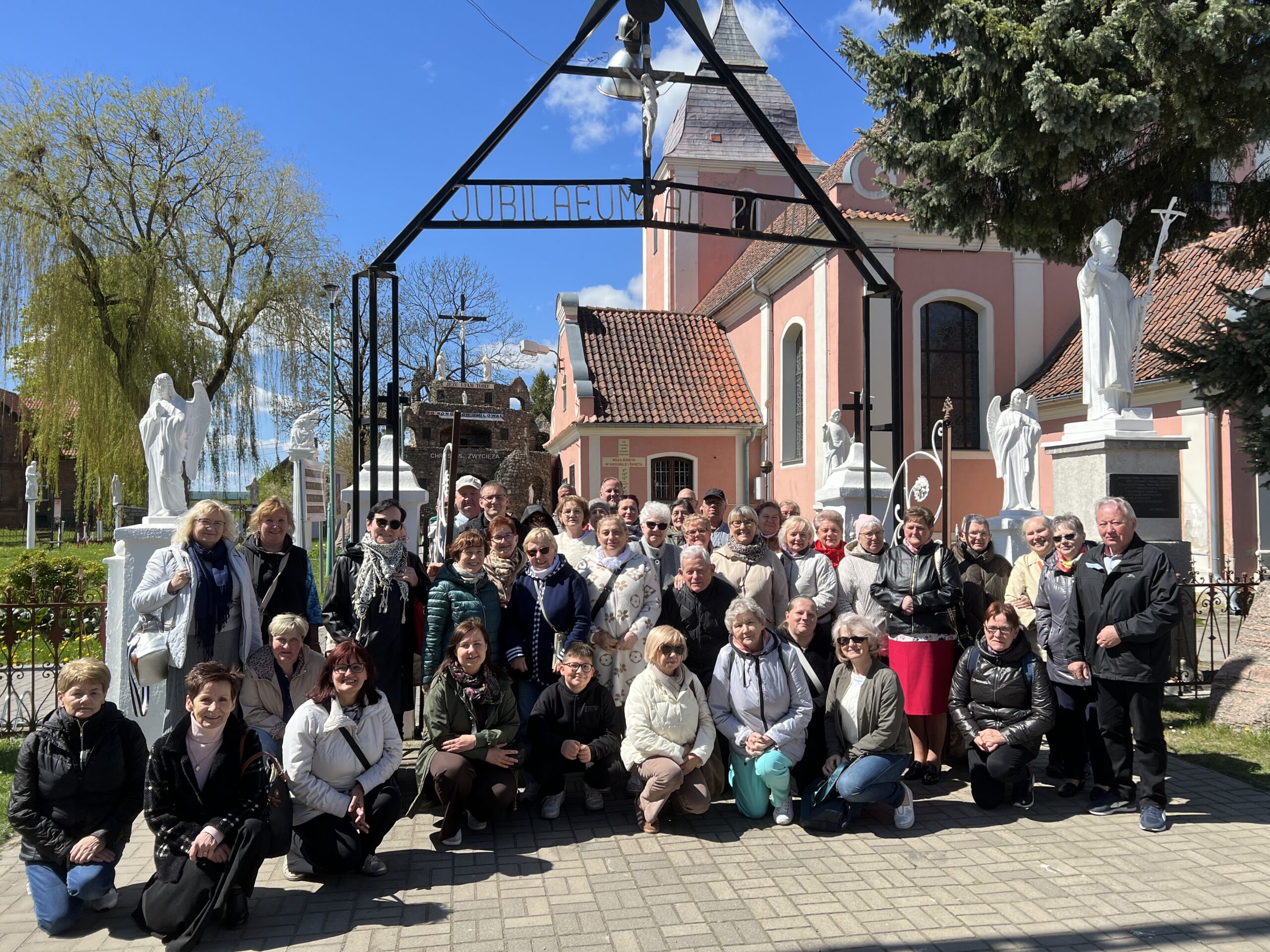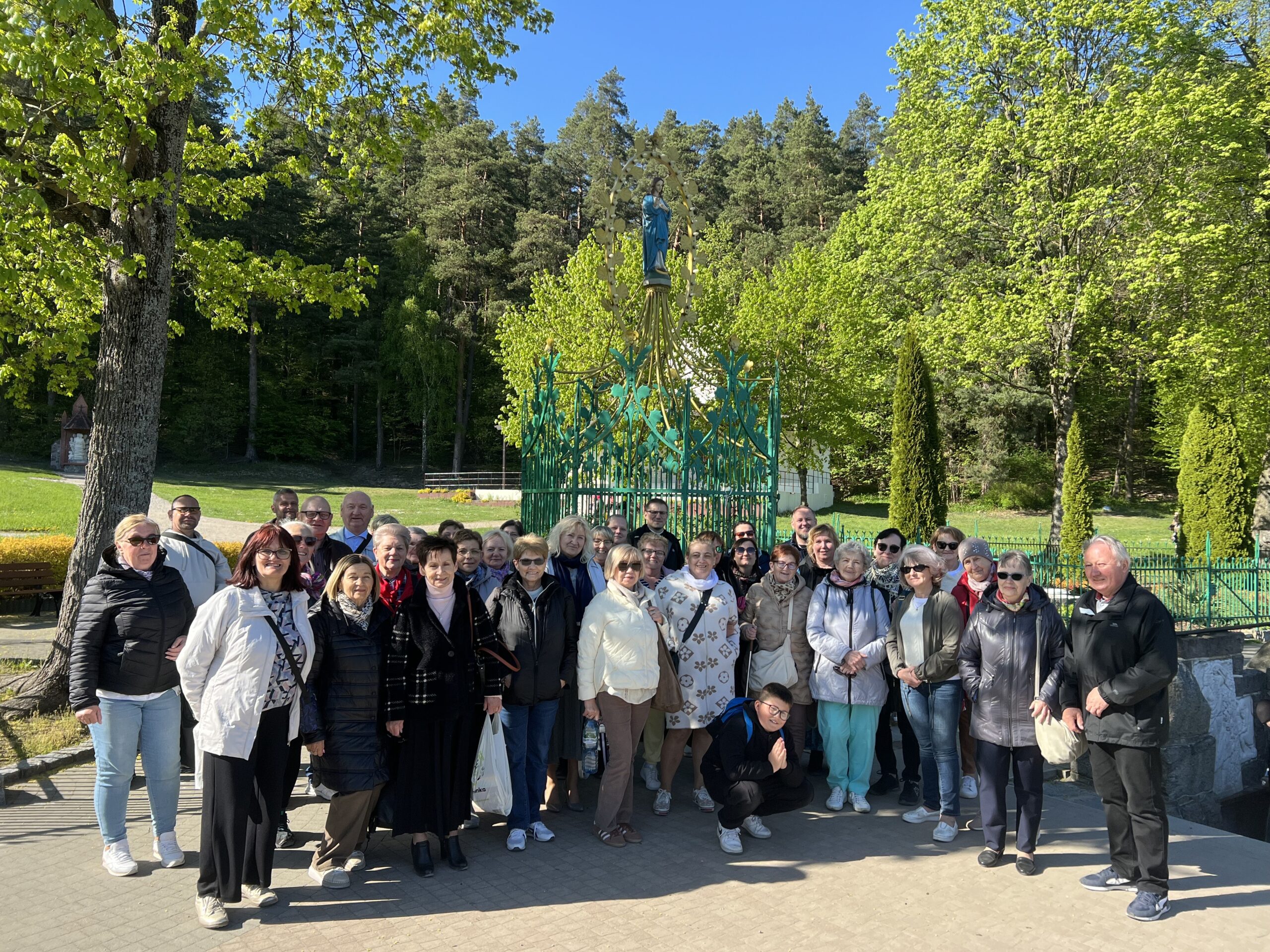 W czasie podróży ks. Kajetan przybliżył nam historię przybycia ludności z terenów Wołynia i Podola na Ziemię Pasłęcką zaraz po II WŚ. Następnie dotarliśmy do Zielonki Pasłęckiej, gdzie usłyszeliśmy historię obrazu Jezusa Tanorudzkiego. Pochodzi on z 1773 r. pod obrazem znajduje się napis „Lud się do Ciebie w potrzebie ucieka. Jezu, od Ciebie miłosierdzia czeka. Roku 1773”. Jak Obraz znalazł się w Zielonce? W dużym skrócie: Otóż do Malborka przywiózł go ostatni Proboszcz Rożyszcz, gdzie wcześniej obraz został przeniesiony z Katedry w Łucku. Po śmierci ks. Proboszcza obraz znalazł się w Ostródzie, a stamtąd do Zielonki przeniósł go ówczesny proboszcz i późniejszy kustosz sanktuarium w Zielonce Pasłęckiej ks. Czesław Drężek. Zachęcam do zapoznania się z całą historią tego obrazu, pytając ks. Kajetana, bo moja opowieść nie odda tego w pełni. Następnie Mszą Świętą w Zielonce w intencji papieża Franciszka oddaliśmy hołd zmarłemu biskupowi Rzymu. Później odmówiliśmy Koronkę do Bożego Miłosierdzia i mieliśmy chwilę czasu na zwiedzanie Sanktuarium i znajdujących się tam relikwii świętych. Nie pojawiłyby się one, gdyby nie obraz Jezusa Tarnorudzkiego, który ułatwił kustoszowi przyznawanie temu miejscu relikwii. Później odwiedziliśmy obecnego kustosza ks. Karola, któremu zaśpiewaliśmy 100 lat, z okazji 40 – lecia święceń kapłańskich. Na jego ręce złożyliśmy ofiarę na rzecz Sanktuarium. Później pojechaliśmy do Gietrzwałdu, gdzie zjedliśmy obiad, następnie mieliśmy czas wolny dla siebie. Pielgrzymkę zakończyliśmy Różańcem pod figurką Matki Boskiej, gdzie znajduje się źródełko. Była to interesująca wyprawa, gdzie mogliśmy poznać ciekawe miejsce i niespotykany obraz Jezusa Tarnorudzkiego. Dziękuję ks. Kajetanowi za zorganizowanie pielgrzymki i bądźcie czujni bo za około miesiąc będzie najprawdopodobniej kolejna pielgrzymka? Dokąd? Bądźcie czujni i słuchajcie ogłoszeń. Więcej zdjęć na stronie internetowej parafii.