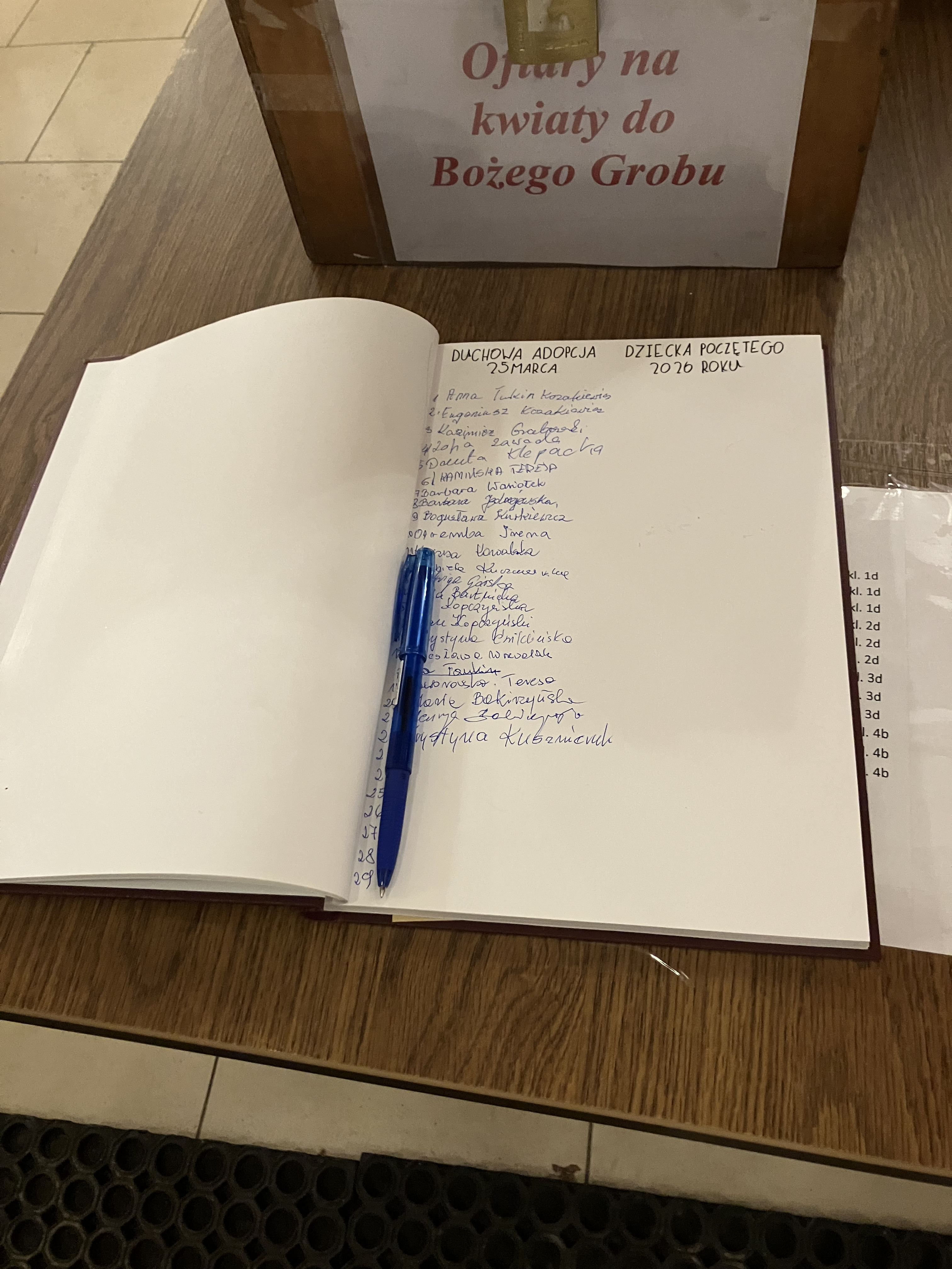 W naszej parafii również i w tym roku prawie 40 osób podjęło modlitwę Duchowej Adopcji, wpisując się do pamiątkowej księgi. Tę inicjatywę już od kilku lat pilotuje przyparafialny krąg Domowego Kościoła. Mszy św. i ceremonii przewodniczył ks. Michał Budek.